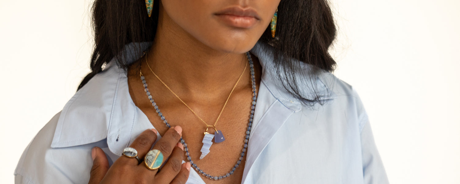 Inspired by the natural world’s unexpected color and texture, Karin Luvaas creates one-of-a-kind jewelry using handcut stones and refined lapidary techniques. Each piece reflects her deep appreciation for organic gemstones, thoughtful design, and the kind of craftsmanship that takes time. With a focus on color, shape, and simplicity, her work brings together raw beauty and modern elegance.