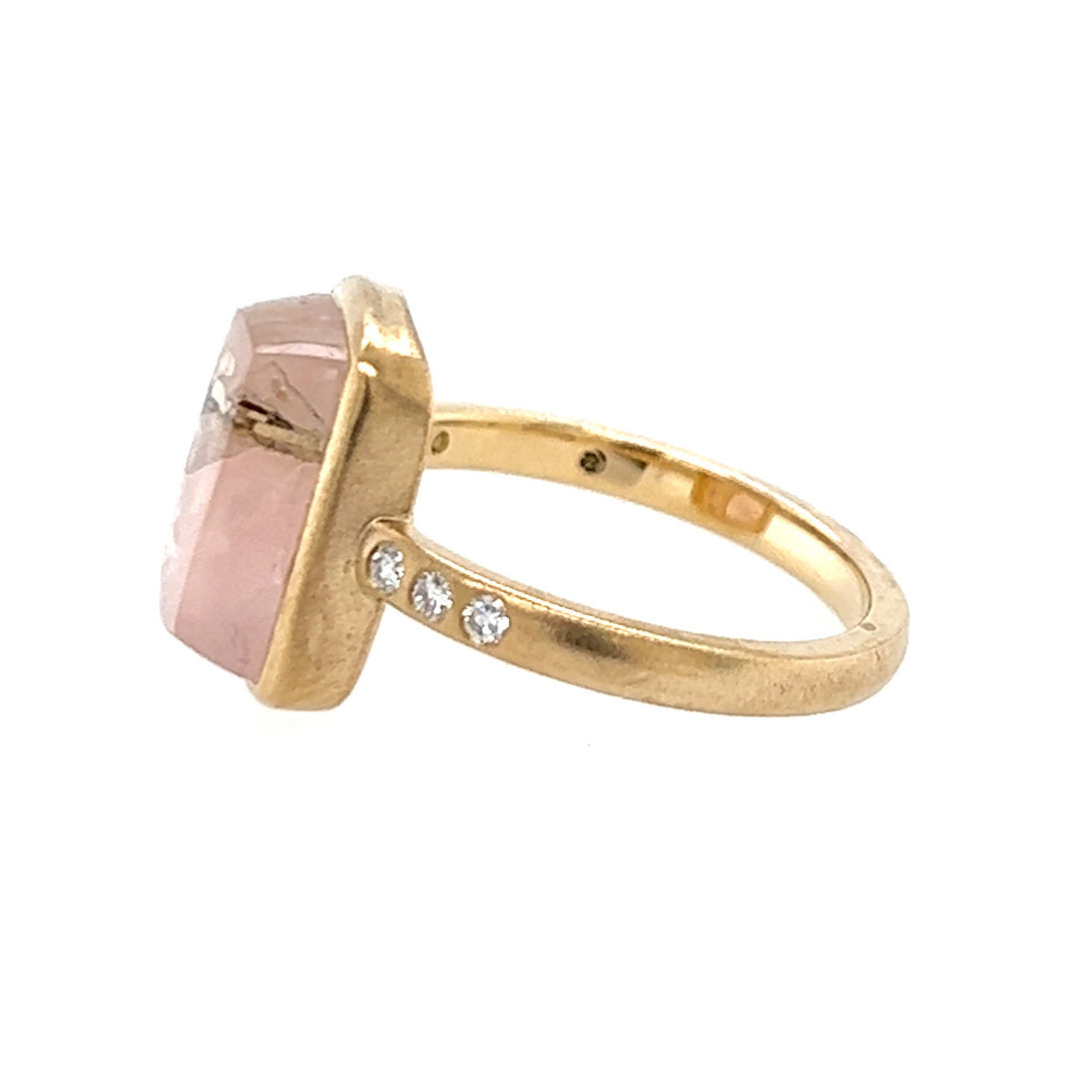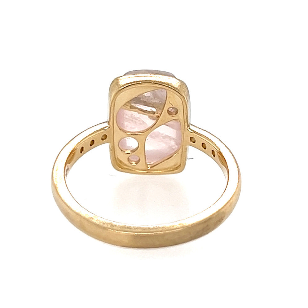 Rose Quartz Gold Ring with Diamonds